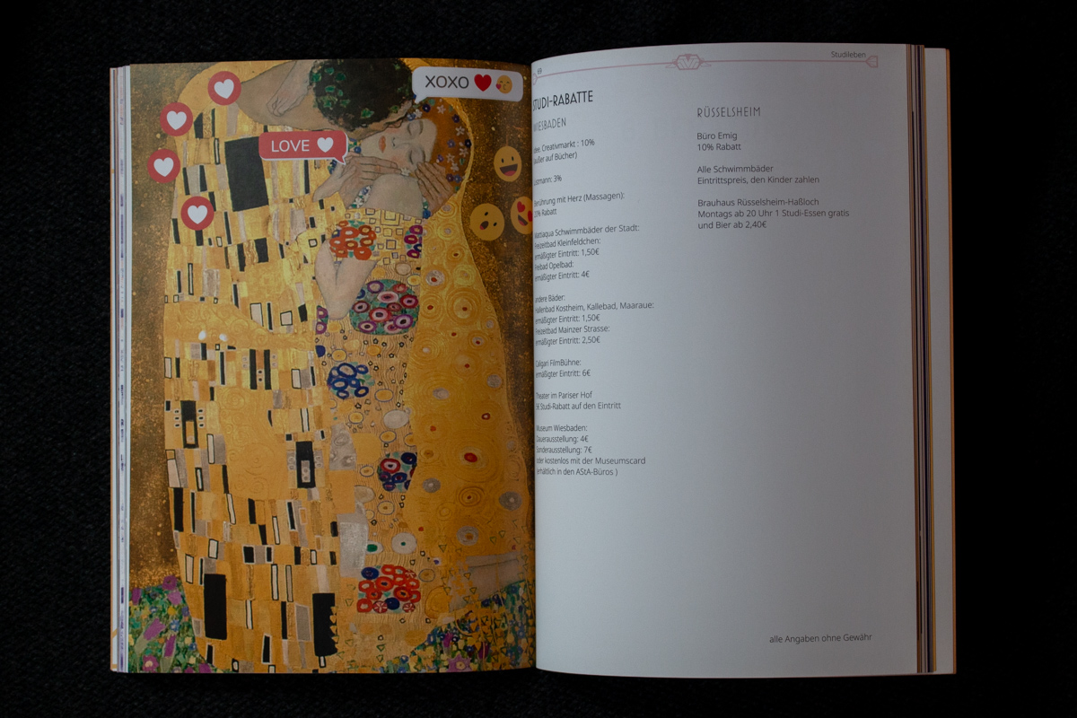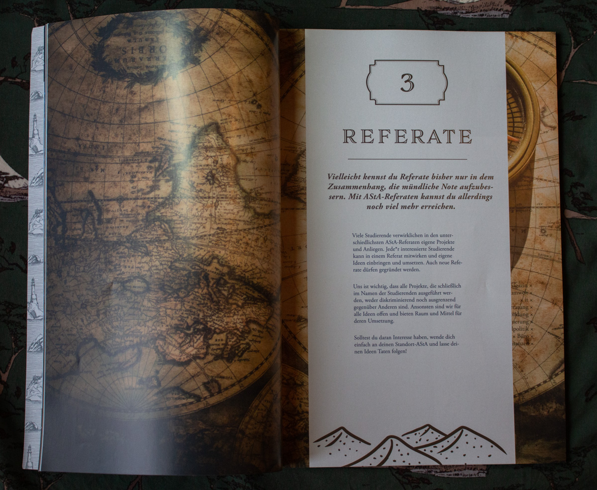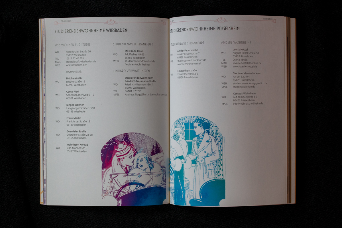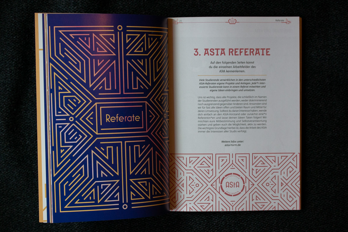 Eine der größten Aufgaben dabei war zu jedem Semester ein Info-Magazin für Erst-semester mit mehr als 100 Seiten neu zu gestalten und zu layouten. Für jedes Magazin wählten wir ein visuelles Thema, welches dann von Cover über Bildwelten und Farbgebung hin zu Typografie pro Semester neu umgesetzt wurde.