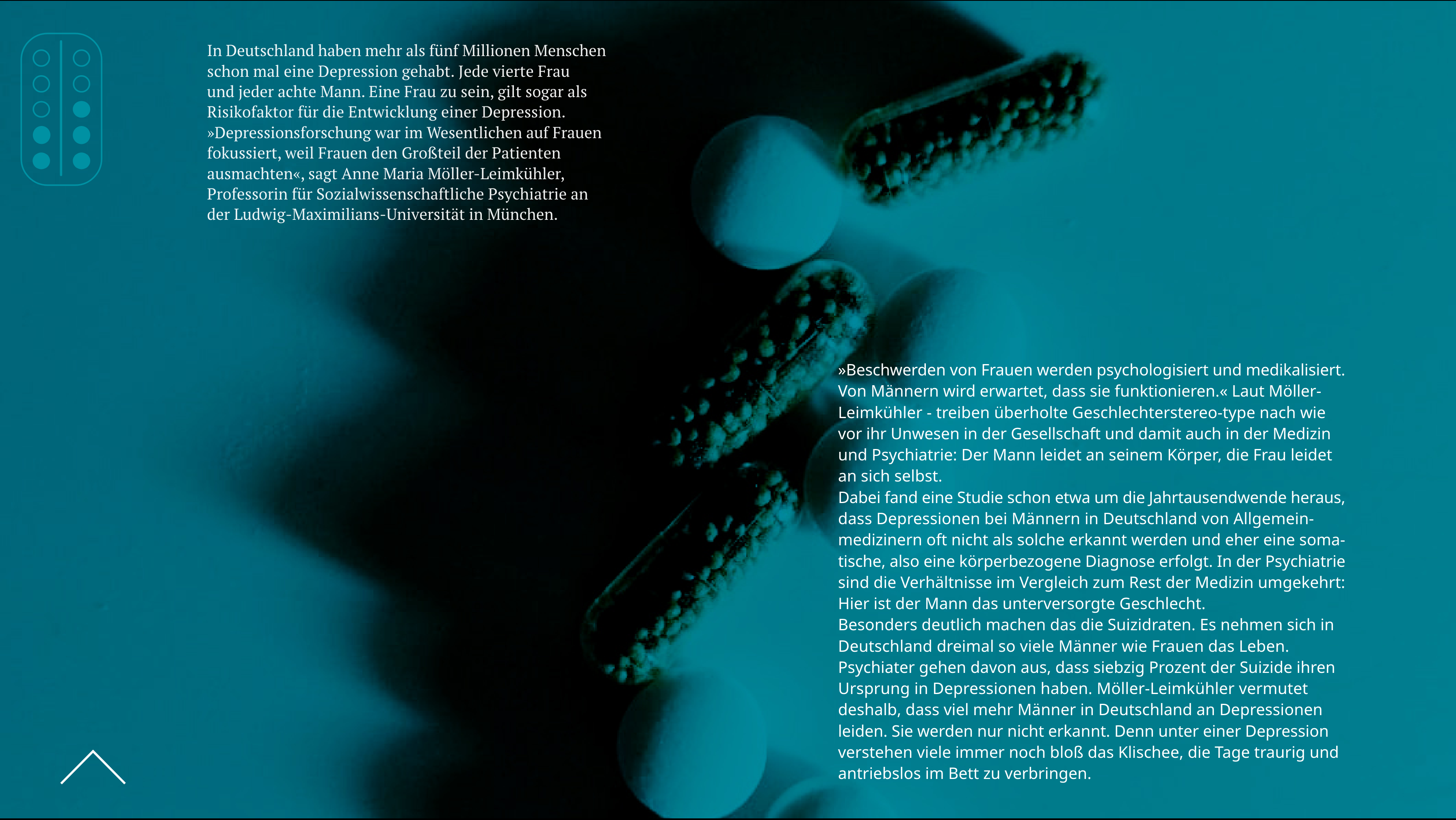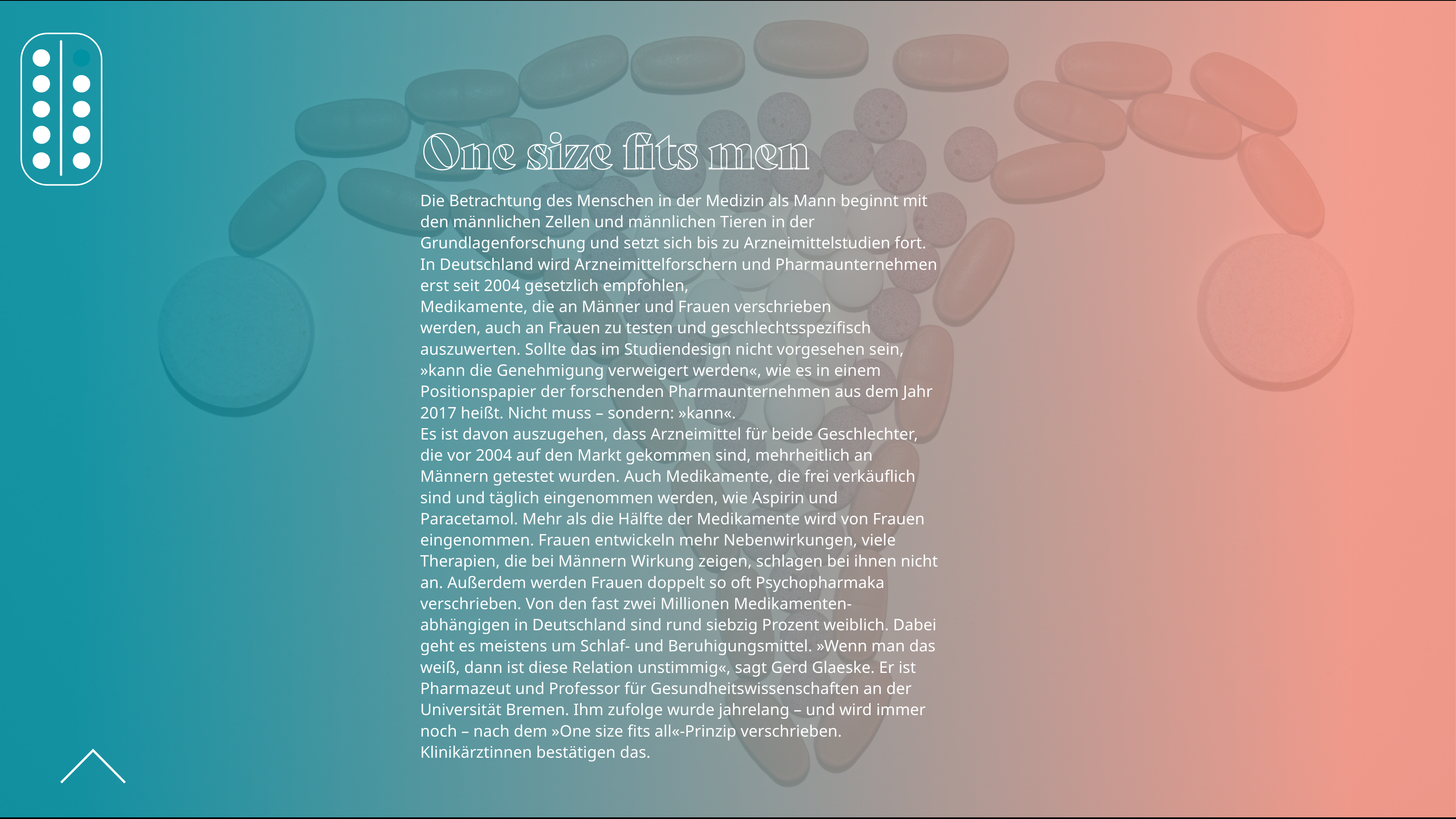 In einer Kooperation des Sueddeutsche Zeitung Magazin mit der Hochschule RheinMain sollte ein Konzept für die digitale Ausgabe des Magazins anhand eines existierenden Leitartikels erstellt werden. Der Artikel “Was Frauen krank macht” von Mareike Nieberding erschien ursprünglich Mitte 2019, und legt offen wie die Medizin bisher frauenspezifische Forschung vernachlässigt und welche schwerwiegende Folgen daraus entstehen.
